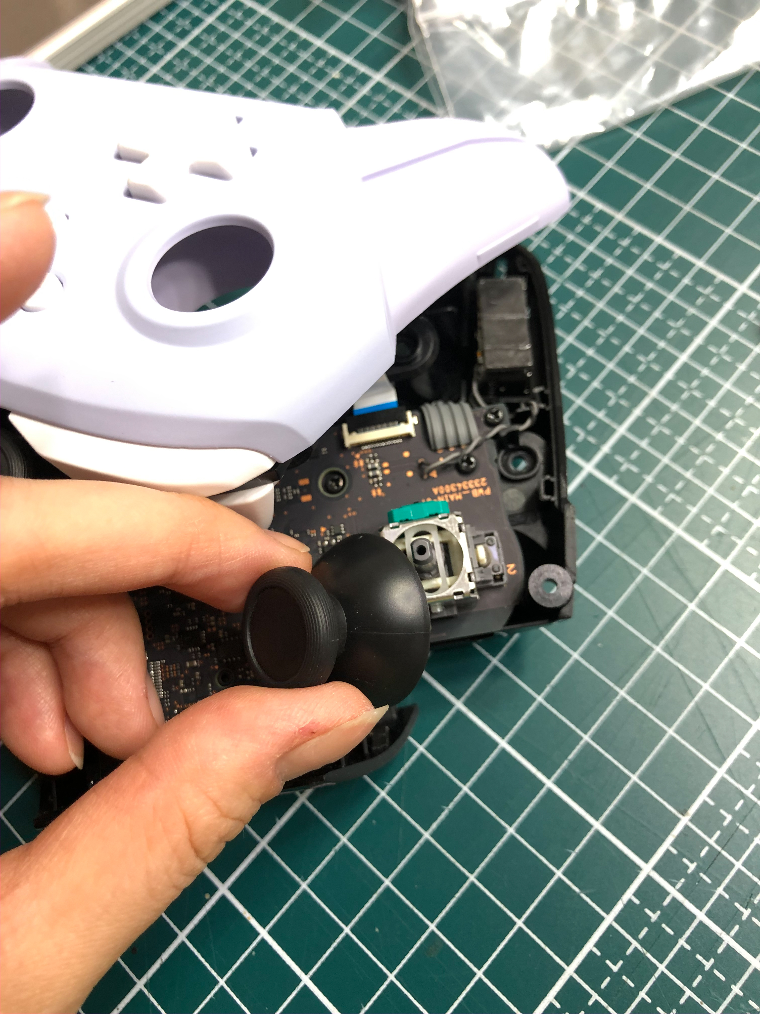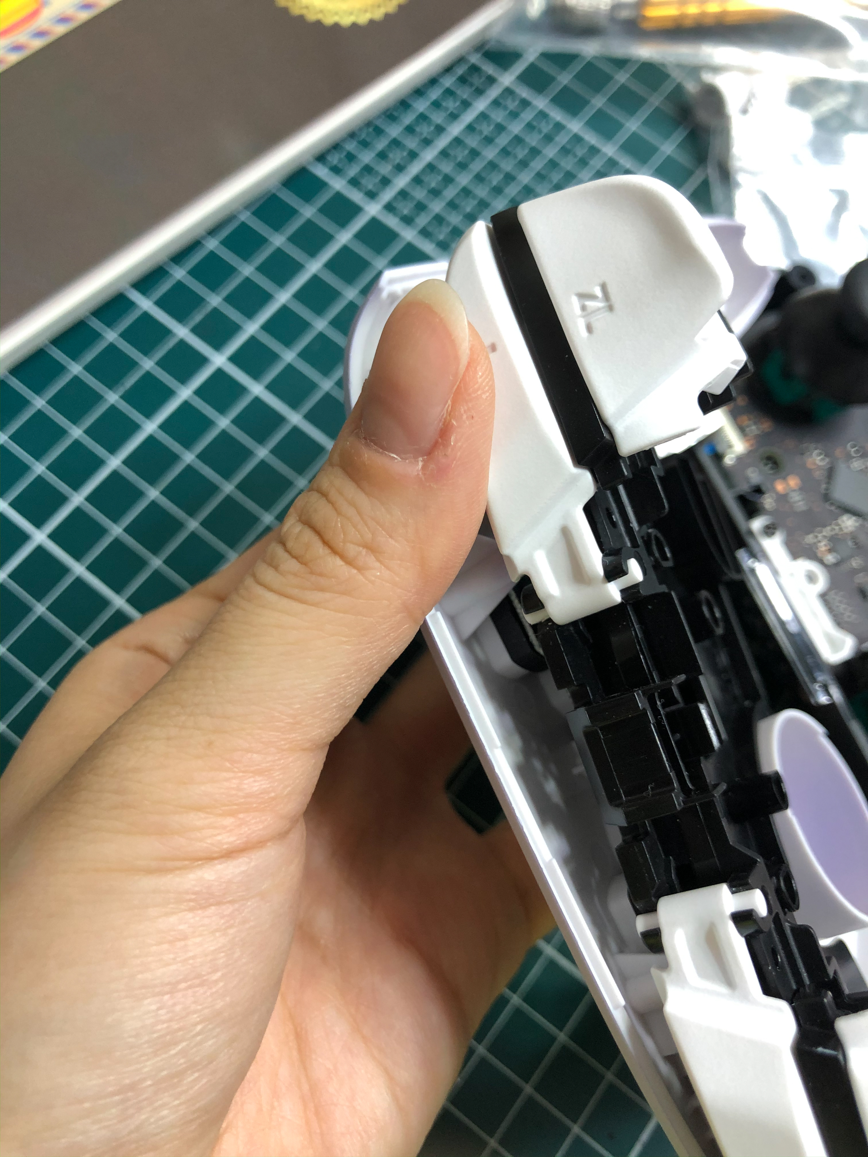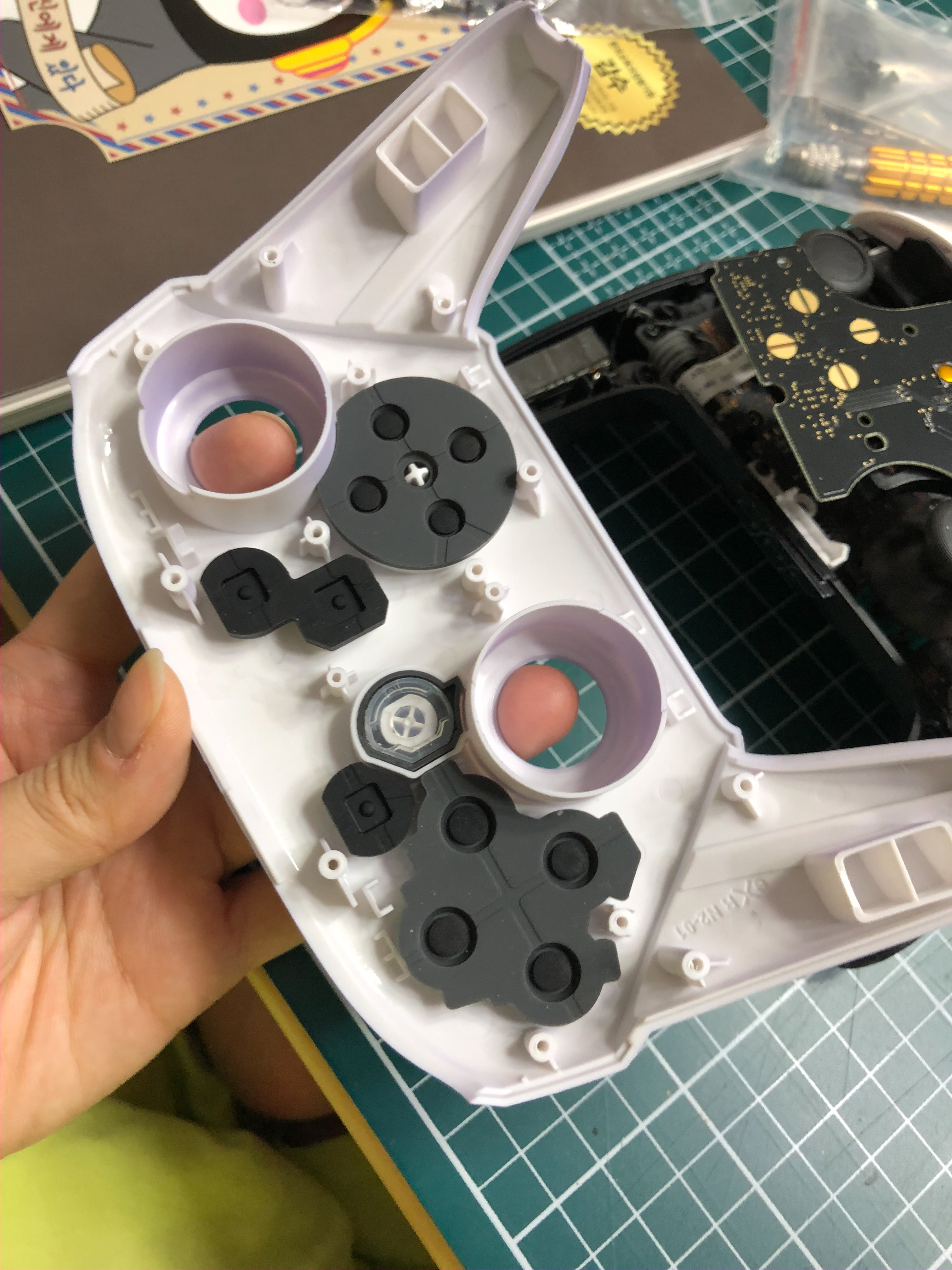 저는 a버튼을 교체할 거니까 그 위에 있는 고무캡을 살포시 떼어냅시다.