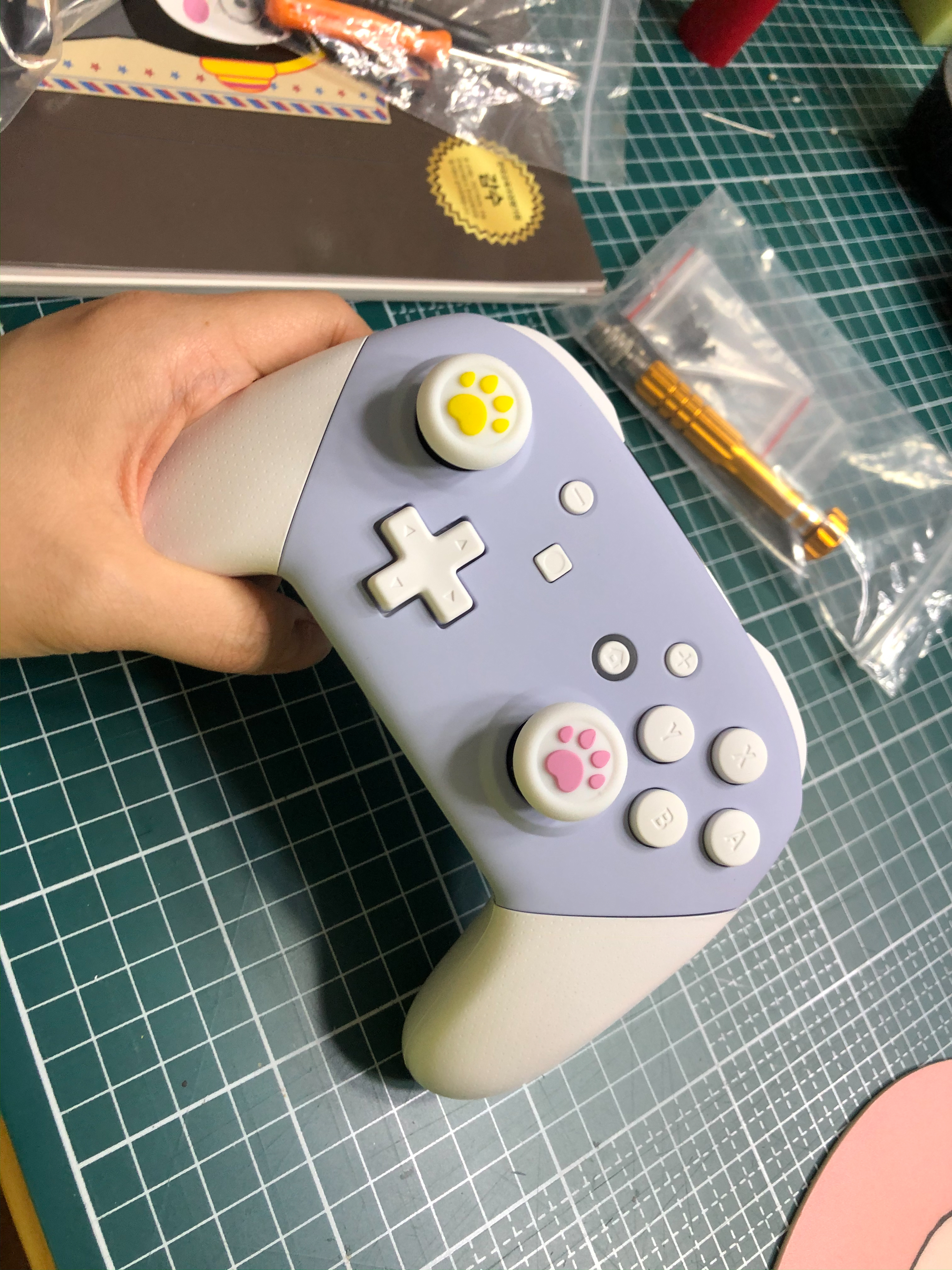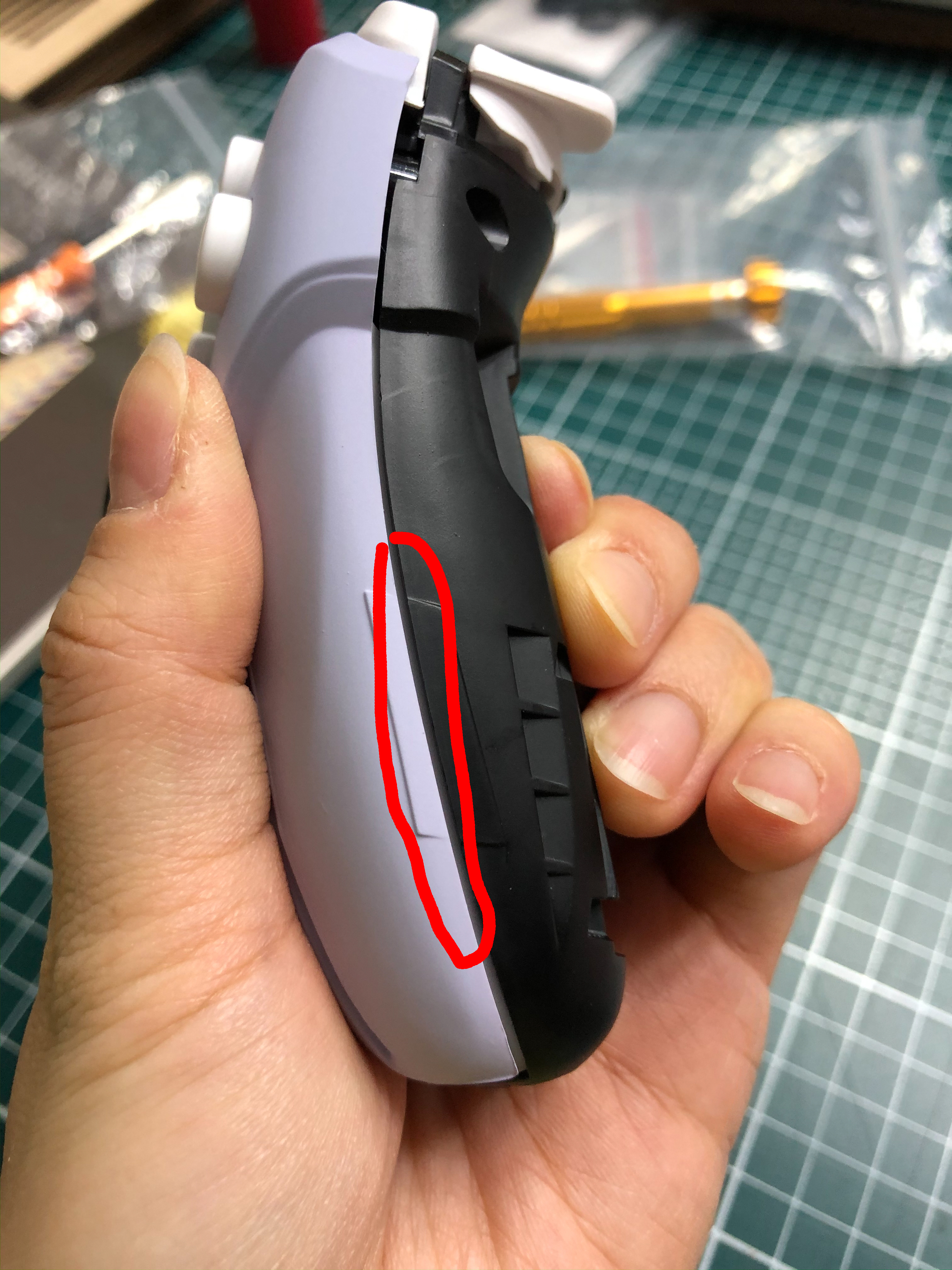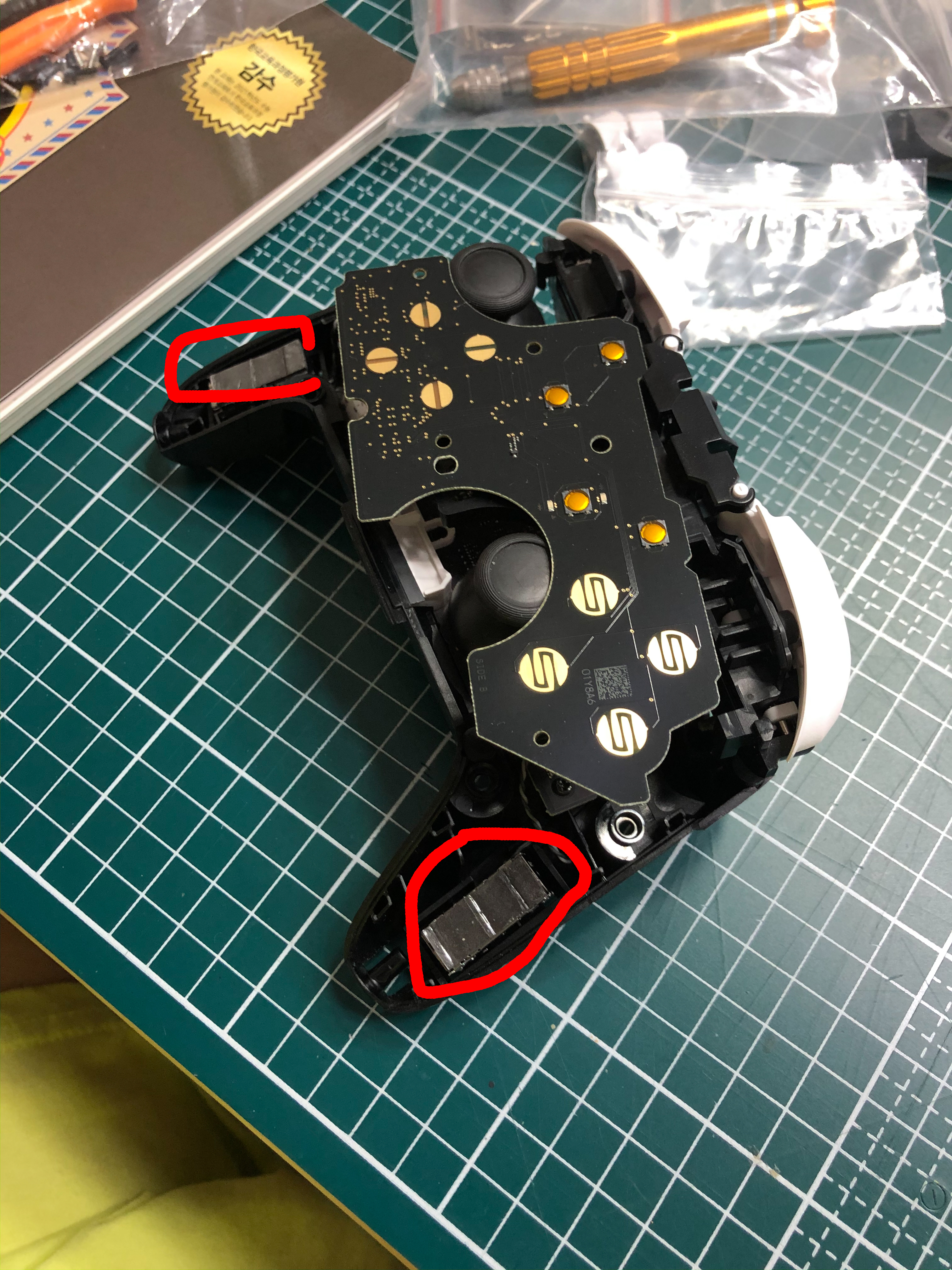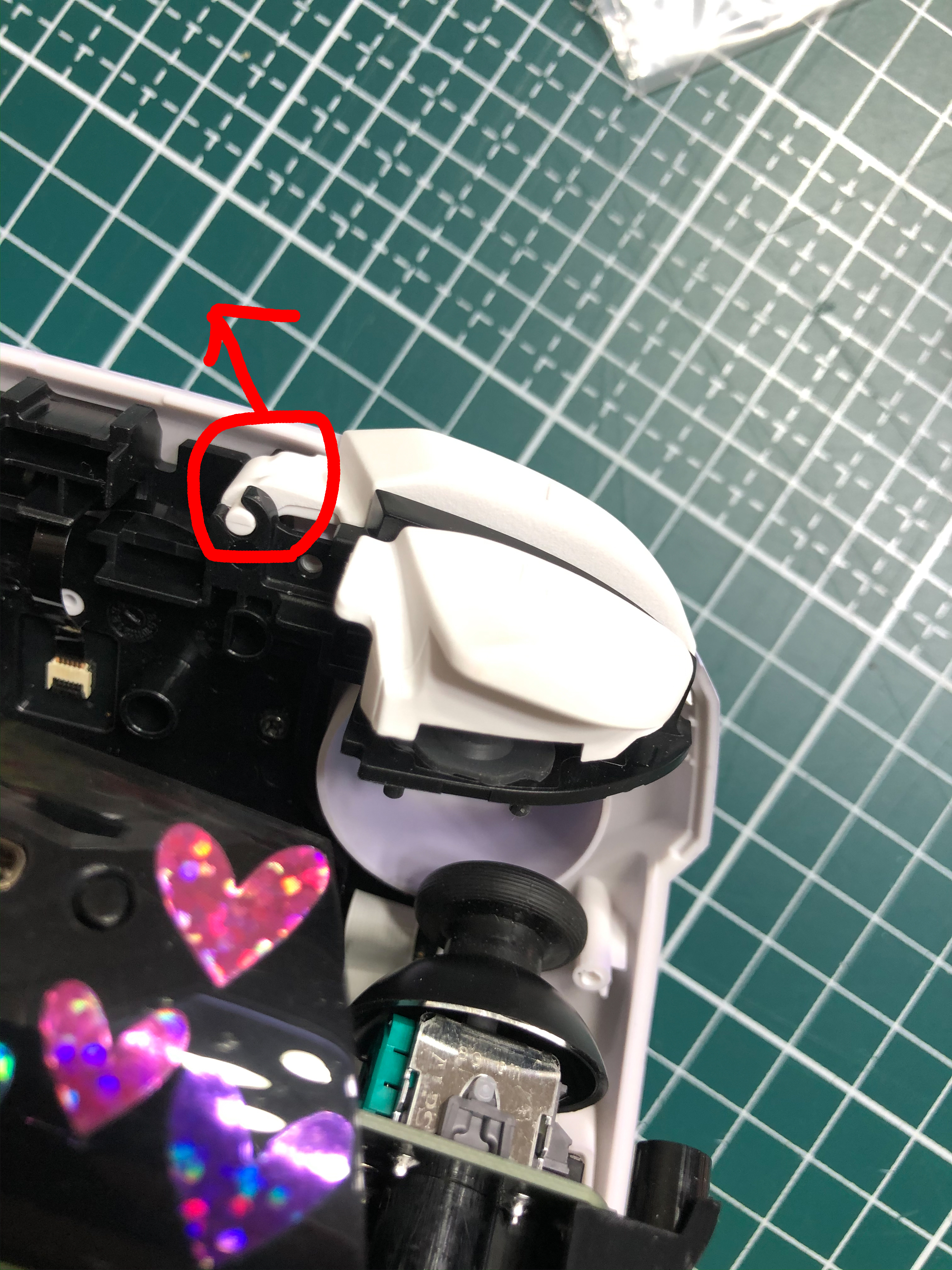 저는 a버튼을 교체할 거니까 그 위에 있는 고무캡을 살포시 떼어냅시다.