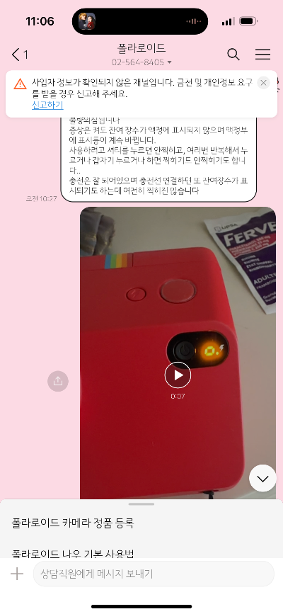 상황을 설명하는 글과함께 동영상을 첨부해서 문의했더니